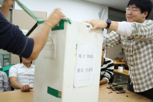 | 30일 새벽, 법인화 총투표 개표 작업이 한창 진행중이다. |