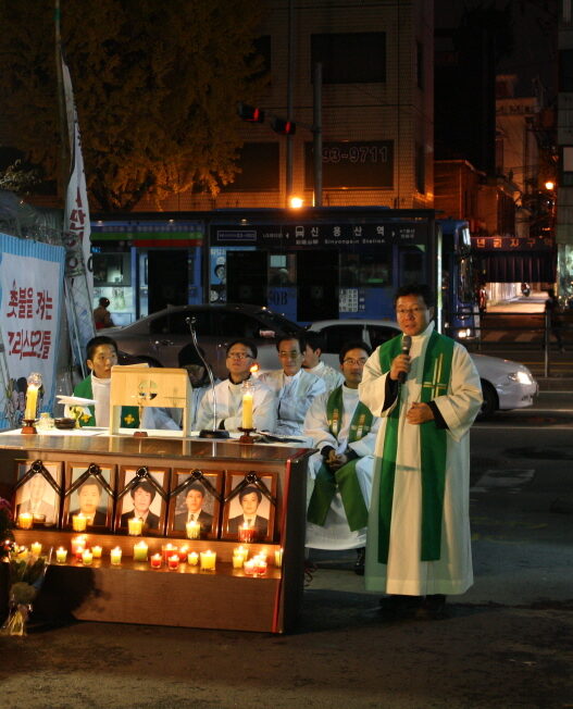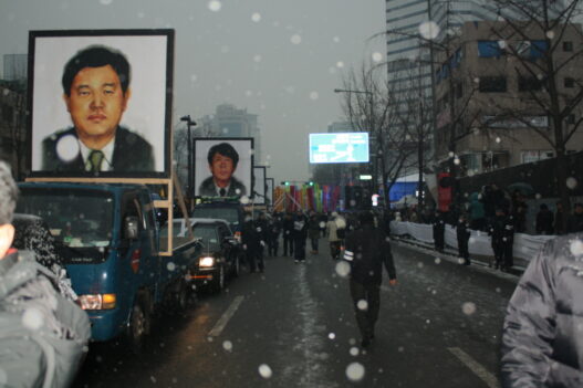 장례를 마치고 장례 행렬이 참사 현장으로 이동중이다.