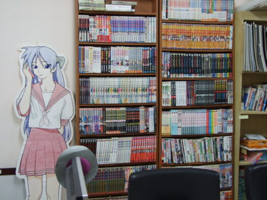 | 여느 만화방과 달리 캐릭터 전신 그림이 있는 이 곳은 학생회관에 위치한 <그림터>. 회원들은 정기적으로 모여서 만화를 그리고, 수시로 동아리방에 들러 만화를 읽는다. 원칙적으로 <그림터>회원을 제외한 이들에게는 만화책 대출이 불가능하다. |