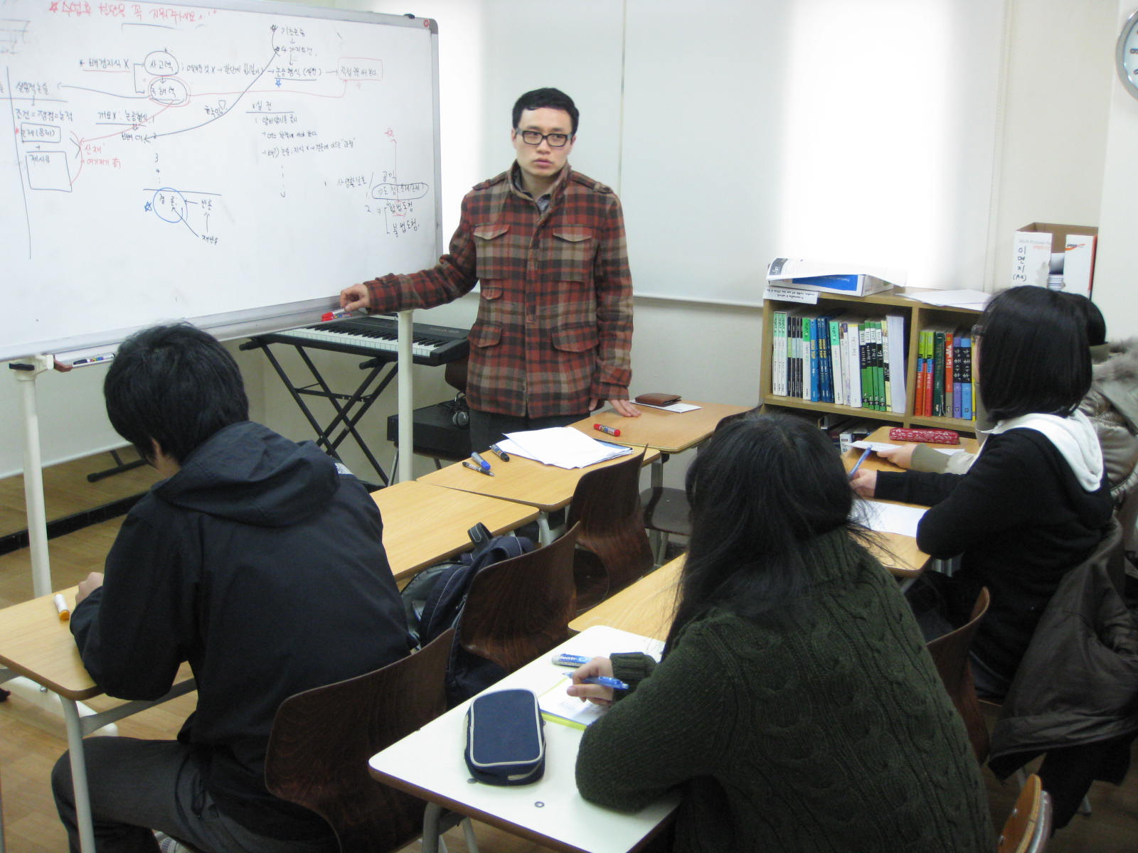 | 논술교실의 수업은 인문계와 자연계, 중등반과 고등반으로 나뉘어 운영된다. 사진은 중등 논술 수업 모습. |