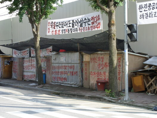 | 시공사인 한진중공업의 재개발 현장 앞에 마련한 세입자들의 ‘집’이다. |