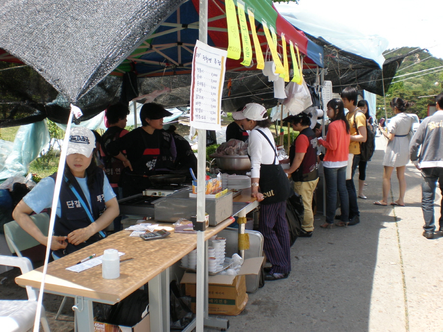잔디밭에 둘러 앉아 파전, 제육볶음과 함께 막걸리 한 잔을 마시는 학생들의 모습, 봄이 무르익을 즈음 곳곳에서 볼 수 있는 풍경이다. 축제 전부터 6월 초까지 학관 앞, 자하연, 해방터, 농대식당 앞 등에서는 연일 장터 판이 벌어진다. 올해엔 작년에 없던 색다른 장터도 눈에 띈다. 소박하게 시작한 서울대 장터 점점 활성화 돼학내 장터는 80년대 중반 즈음 등장했다. 해방터에서 21년 째 김밥을 팔고 있는 안병심(75) 씨는 “내가 처음 장사를 시작할 때도 장터를 하는 사람들이 있긴 했다. 하지만 지금처럼 활발하지는 않았다”고 말했다. 김대진(임학 88) 씨는 “내가 입학했을 무렵엔 장터가 많지 않았다. 정치적인 목적으로 장터를 열기도 했지만 농활비를 마련하는 등 돈을 벌기 위해 장터를 열기도 했다”며 기억을 떠올렸다. 지금처럼 장터가 활성화된 건 90년대 이후다. 김진아(원예 92) 씨는 “매 학기에 한 두 번은 장터를 했다. 과 운영비 벌기 위해서, 또는 민주화 운동을 하는 선배에게 기금을 마련해주느라 장터를 했다”며 당시 장터 모습을 회고했다. 그 당시에 처음으로 장터의 고정메뉴인 파전, 순대, 막걸리 등이 등장했다. 오늘날 장터들이 주로 1, 2학년들에 의해 진행되는 것과 달리 90년대 초에는 3학년 집행부들이 주축이 돼 움직였다. 배중환(식물생산 04) 씨는 “내가 신입생이었을 때는 학번에 관계없이 다들 장터에 참가했는데 요즈음엔 학점, 자격증, 취업 등으로 3학년만 돼도 과 활동에 거의 참여하지 않는다. 장터에서 고학번들을 보기는 힘들다”고 말했다. 오랫동안 서울대 장터와 함께한 이들서울대에 장터가 들어선 때부터 20년 이상 장터를 열어 온 사람들이 있다. 민주화실천가족운동협의회(민가협)와 전국민주화운동유가족협의회(유가협)는 축제 때마다 학관 앞자리를 지키고 있는데 맛있기로 소문나 학생들에게 인기가 많다. 유가협은 민주화 열사의 가족들로 구성된 단체로 할머니들이 자신의 아들 사진을 셔틀정류장에 걸어놓고 음식을 판다. 이번 축제에서 오징어숙회를 팔던 할머니는 “여기 걸려있는 게 내 아들”이라며 학생들에게 그들을 기억해주기를 부탁했다. 가톨릭학생회(울톨릭)는 79학번 한희철 열사를 추모하기 위해 유가협과 지속적으로 연대해 장터를 열고 있다. 울톨릭 회장 심재홍(인류 08) 씨는 “장터를 열기 전에 울톨릭 사람들끼리 모여 연대 장터의 의미에 대해 다시 떠올리곤 한다. 음식은 유가협에서, 그 외 장소나 천막 대여, 회계업무 등은 울톨릭에서 맡고 있다. 수익금은 유가협 기금으로 사용된다”고 말했다. 전국철거민연합(전철연)도 학교에서 장터를 한 지 10년이 넘었다. 전철연 조직위원인 김소연 씨는 장터를 여는 이유에 대해서 “학생들이 우리가 하는 일에 관심을 갖게 하는데 목적이 있다. 우리는 범죄자가 아니라 학생들 부모님과 똑같은 아저씨, 아줌마라는 사실을 기억해 주었으면 한다”며 투쟁에 함께 할 것을 부탁했다.