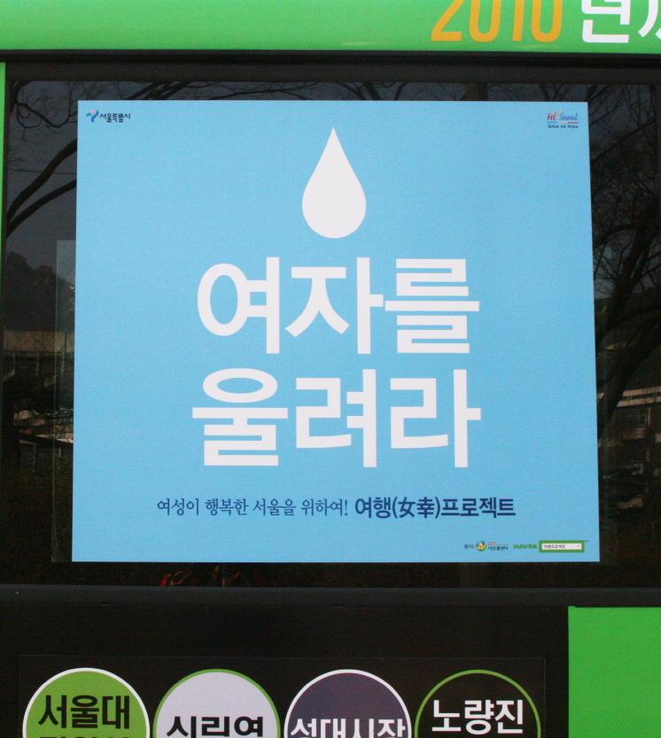 ‘여자를 울려라.’ 도발적인 문구가 인상적인 이 광고는 어느 기업의 티저광고가 아니다. 바로 서울시에서 지난 2007년부터 야심차게 추진 중인 ‘여자가 행복한 도시 프로젝트’(여행프로젝트)의 광고다. 서울시에서 운행 중인 시내버스나 지하철 안에서 이 광고를 쉽게 발견할 수 있다. 광고를 자세히 살펴보면 가로등을 설치해서 밤길을 밝게 해준다거나, 하이힐의 뒷굽이 빠지지 않게 보도블럭을 교체해주는 사업 내용이 소개돼 있다.그러나 광고에 소개돼 있는 몇 가지 사업들이 전부는 아니다. 여행프로젝트는 여성의 사회참여 확대와 여성친화적인 도시환경을 구축하겠다는 것을 목표로 2007년부터 2010년까지 5천억 원 이상의 사업비를 들여 시행하는 대규모 프로젝트다. ‘돌보는 서울, ‘일있는 서울’, ‘넉넉한 서울’, ‘안전한 서울’, ‘편리한 서울’의 5개 사업 영역에서 90개 사업을 실시한다. 이 사업을 통해 정책 개발 단계에서부터 여성들의 관점이 반영되고, 여성들이 도시 공간을 불편함 없이 이용할 수 있는 여성 친화적인 서울을 만들겠다는 것이 오세훈 서울시장의 꿈이다. 女幸, “여성 정책의 새로운 패러다임”여행프로젝트의 정신은 ‘여자가 행복하면 모두가 행복하다’라는 표어에 잘 나타나 있다. 배은경(여성학 협동과정) 교수는 “여성의 눈으로 들여다보면 남성의 눈으로만 보았을 때에는 보이지 않았던 생활의 불편함과 위험이 보인다. 그리고 그 혜택은 여성만 누리는 게 아니라 공동체 모두에게 이익이 될 수 있다는 것이 이 말의 의미”라고 말한다. 그동안의 여성정책이 여성을 보호의 대상으로 여기는 것이었다면, 여행프로젝트에서는 여성의 적극적인 정책 참여 확대를 보여주고 있다고 전문가들은 그 가치를 인정하고 있다.지금까지 여행프로젝트에 대한 평가는 일단 합격점이다. 우선 서울시 민원행정 서비스의 여성 분야 만족도가 14.5%에서 28.4%로 크게 높아졌다. 서울시에서 2007년부터 여행프로젝트를 강력한 의지로 추진한 결과로 해석된다. 외국의 반응도 좋다. 올 3월 제 53차 유엔 여성지위위원회에서는 여성이 정책결정 과정에 참여할 수 있는 좋은 정책이라며 호평을 받았다. 이에 앞서 2008년 7월 스페인 마드리드에서 열린 세계여성학대회 포럼에서 여행프로젝트가 소개되기도 했다. 이처럼 서울시에서 서울이라는 지역을 기반으로 여성이 적극적으로 참여하는 정책인 ‘젠더 거버넌스’를 추진하는 것에 대해 국내외에서 기대의 목소리가 크다. 하지만 여행프로젝트가 애초 그 설립 취지나 목적과 달리 운영되고 있다는 우려의 목소리도 존재한다.“여성의 행복? 이런 것이라면 반댈세”우선 이 프로젝트가 반여성적인 정책이라는 목소리가 심심치 않게 들린다. 아직도 여성의 역할을 가부장적인 가치관에 기반해서 소극적으로 바라본다거나, 여전히 여성을 정책의 주체가 아닌 정책의 대상으로 바라본다는 지적이다. 여성주의 문화웹진 ‘언니네트워크’는 지난 2월 특집에서 ‘여자를 울려라? 눈물 난다!’라는 여행프로젝트 비판 글을 게재했다. 언니네트워크의 사무국장인 난새 씨는 “여행프로젝트는 완전히 쇼”라고 비판했다. 특히 여행프로젝트가 육아나 보육에서 여성이 돌봄 노동을 책임져야 한다는 전제를 갖고 있다는 점이 문제라고 지적한다. 또한 그녀는 “여행프로젝트에서 말하는 여성이란 기혼 여성을 뜻하는 것이고, 결혼을 하지 않는 ‘비혼 여성’도 행복해질 수 있는지 의문”이라고 말했다. 3.8 여성의 날을 맞아 인문대 학생회와 학술 동아리인 이퀄리버티가 꾸린 단체 연두빛(연대의 두근거림으로 빛나는)도 자보를 붙여 이런 점을 비판했다. 연두빛의 단장 이단(독어교육 07) 씨 역시 “여행프로젝트는 가정에서 ‘돌보는 역할’을 끊임없이 여성이 해야 하는 것으로 요구 하고 있다. 그리고 여성의 노동이 마치 ‘돌봄 노동’에만 한정되는 것 처럼 생각하고 있다”고 비판했다. 여행프로젝트에 포함돼 있는 아이돌보미 사업지원 강화, 초등학교 급식도우미 지원은 이런 일은 원래 여성이 해야 하는 일로 미리 전제하고 있다는 것이다.