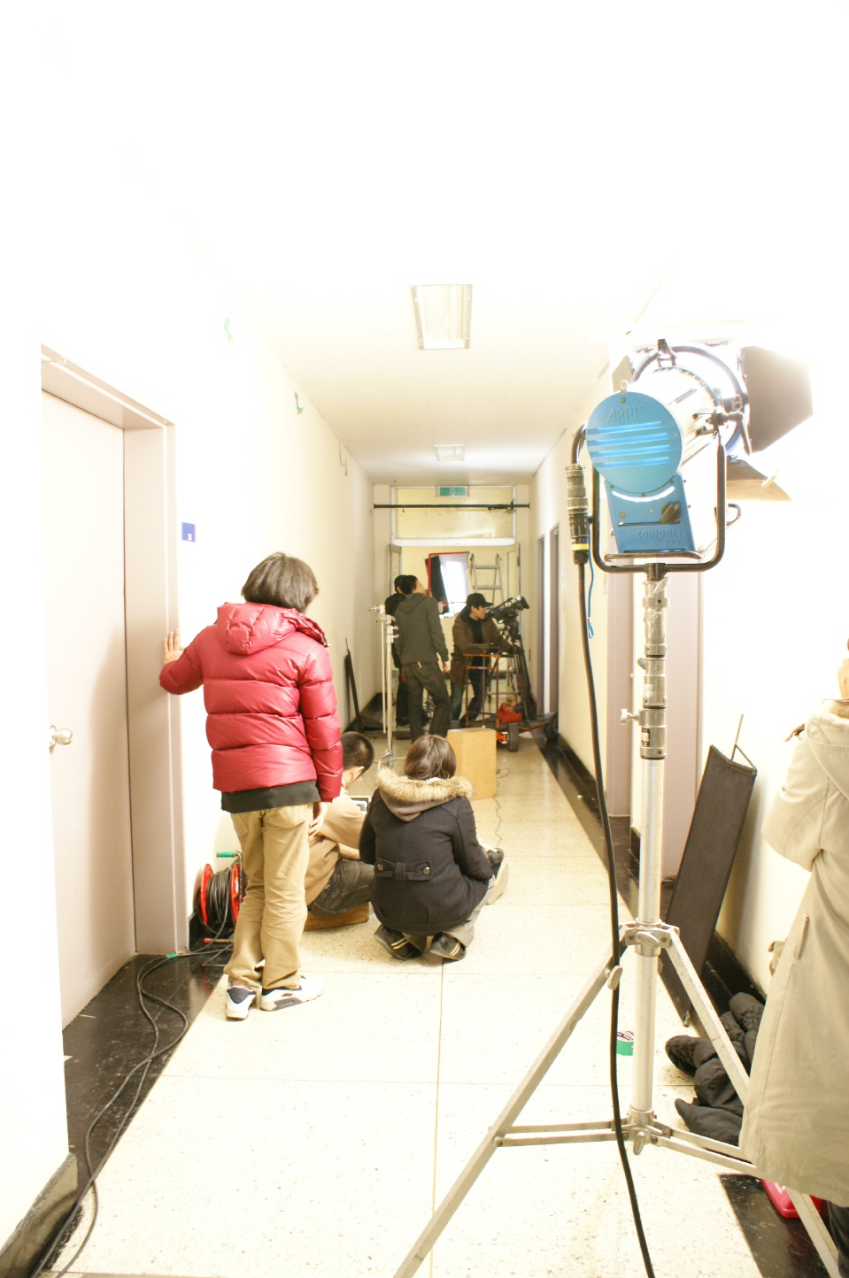 연기 중인 배우의 모습. 주인공이 친구에게 문을 열어주는 장면이다. 10여 차례의 NG끝에서야 주인공은 ‘문 열어주는 일’을 끝낼 수 있었다.