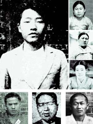 | 경성트로이카의 일원들. 큰 사진 이재유, 시계방향으로 박진홍, 이순금, 이효정, 이관술, 김삼룡, 이현상. |