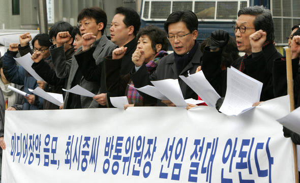 최상재 위원장은 최시중 방송통신위원장의 내정을 반대해 시위를 벌였다.