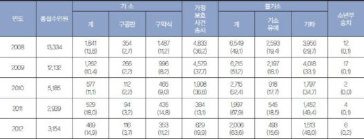 ▲가정폭력사건이 처리된 과정을 나타낸 표. 아내폭력사건은 가정폭력사건의 65% 이상을 차지한다.