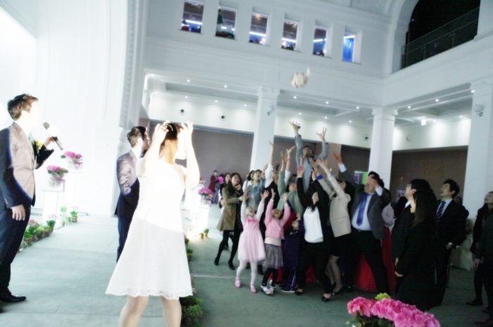 ▲부케 던지기 순서는 부케를 받을 사람을 따로 정하지 않고 하객 모두가 참여하는 이벤트로 만들었다. ⓒ이후정