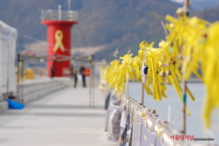 세월호 참사의 현장인 팽목항 방파제에는 세월호를 기억하고, 실종자들을 위해 기도하는 사람들의 발길이 끊이지 않고 있다.
