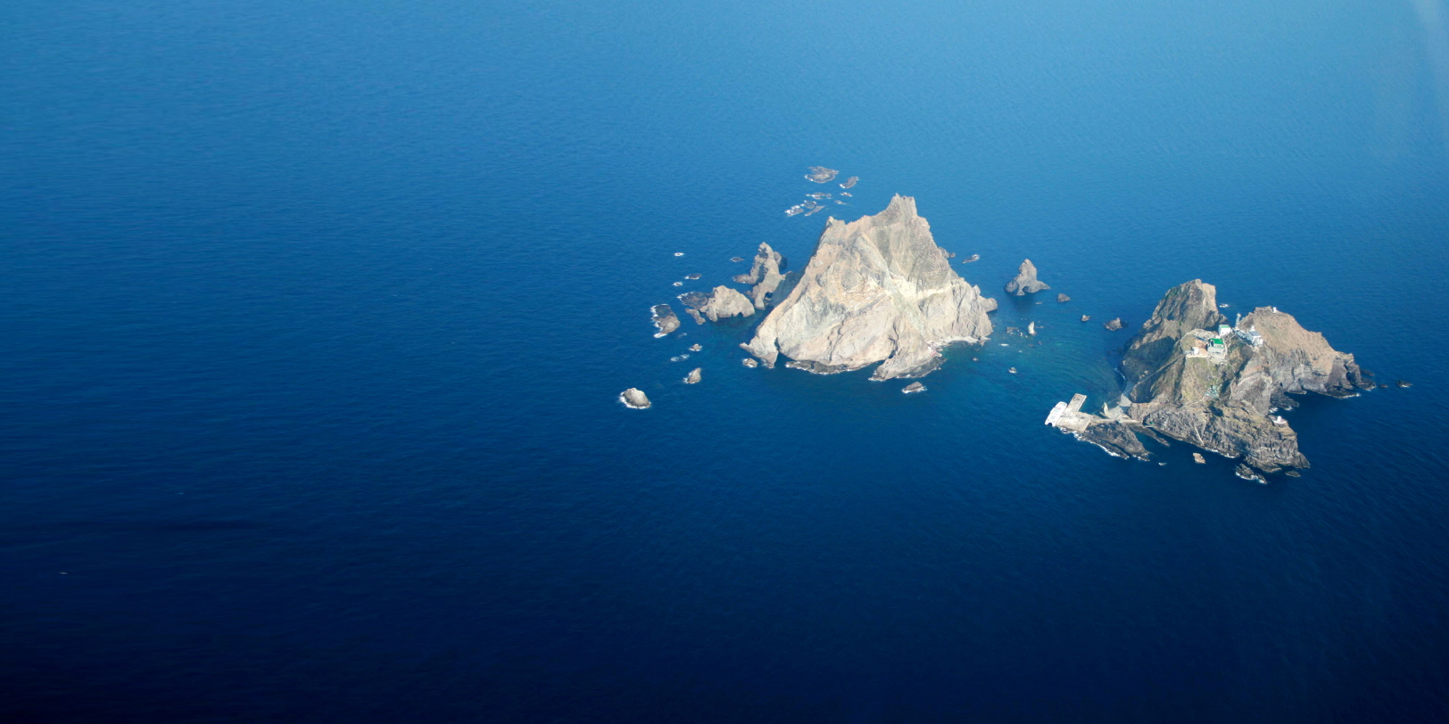 하늘에서 내려다 본 우리 땅 독도의 전경.