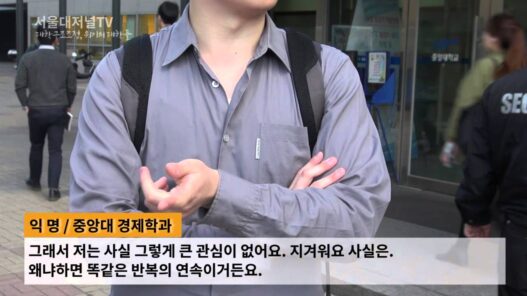 경제학과랑 경영학과는 피해 받는 게 없고 (피해 받는 건) 주로 인문대에요. 그래서 저희 과 같은 경우는 오히려 이런 데는 동참하지 말라고 옛날엔 그랬어요. 동참하지 말라고. 그래서 저는 사실 그렇게 큰 관심이 없어요. 지겨워요 사실은. 왜냐하면 똑같은 반복의 연속이거든요. 이게 이렇게 반대를 한다고 해도 여기서 시위도 하고 그래봤지만 제가 알기로 달라지는 건 없었어요.