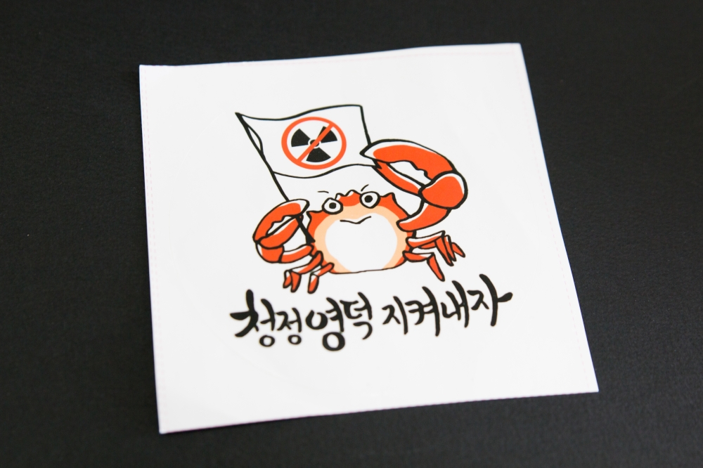 범군민연대의 홍보스티커. 깃발을 들고 있는 게는 대게가 아니라 홍게라고 한다. ⓒ박나연 사진기사
