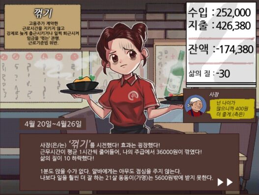 ▲ <시사인>이 기획한 ‘최저임금으로 한 달 살기’ 게임 화면.