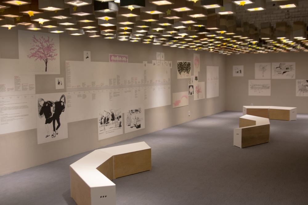 전시실의 양쪽 벽에는 세월호의 출발부터 구조·수색까지의 기록이 묘사·증언·의문과 함께 시간 순으로 적혀있다. 여덟 명의 미술가들은 ‘비(非)이성’에 의해 희생된 아이들의 ‘순진무구한 이성’을 하얀 캔버스 위에 표현했다. 그리움은 형상을 입어 그림이 됐다. 천장에는 304개의 ‘기억함’이 찬란히 빛을 내고 있다.