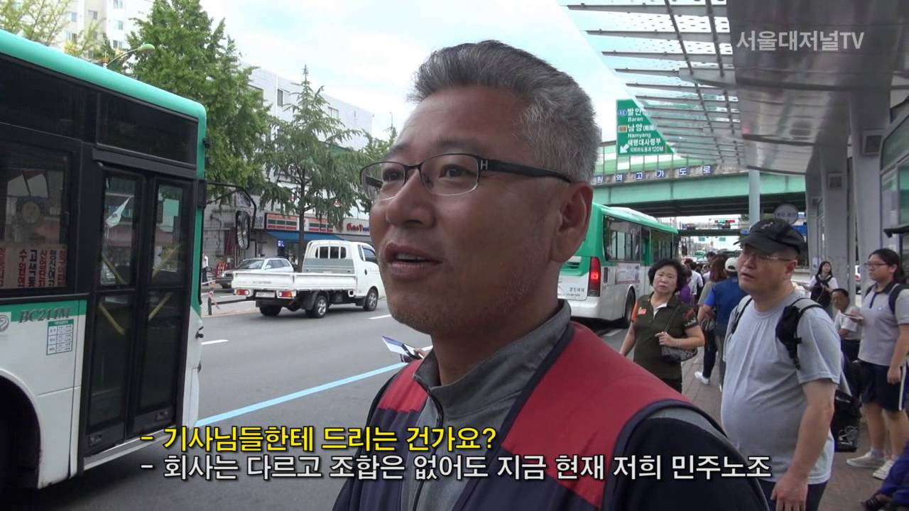 승강장에서 조합원이 없는 회사도 다른 노선에 다른 버스 노동자들한테 유인물을 이 유인물을 이렇게 들어야 하나 이거를 알려서 지금 모르는 분들이 많거든요. 지금 내부에서 사측에서 입단속을 해서 자기들이 어떤 처우를 받고 있는지도 모르는 분들이 많아요. 그래서 알리려고 하는 거죠. 조합 가입여부를 떠나서 지금 현재 본인들이 얼마나 불이익을 받고 있는가 이런 것을 알리기 위해서 선전전 하고 있는 거죠.