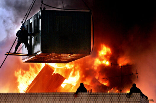 ▲ 용산 참사 당시. 경찰은 컨테이너에 병력을 실어 농성을 진압했고 그 과정에서 화재가 발생했다. ⓒ한겨레
