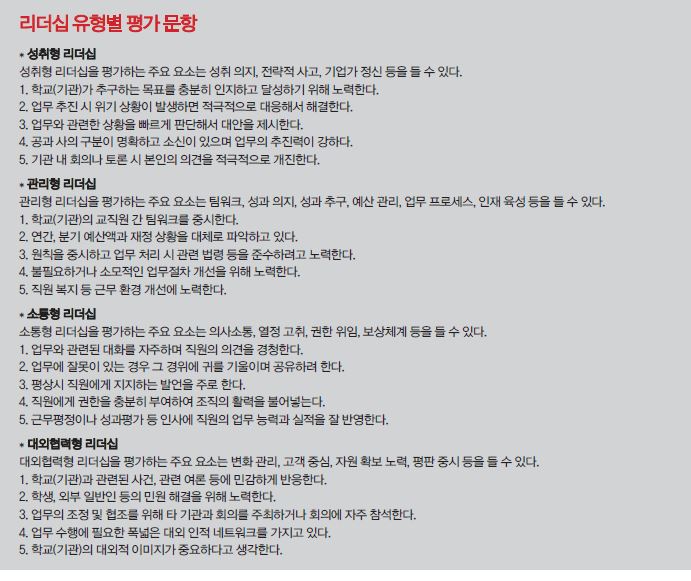 평가 대상은 총장, 교육부총장, 연구부총장, 기획부총장, 교무처장, 학생처장, 연구처장, 기획처장으로 총 8명이었다. 평가는 온라인 설문조사시스템을 이용해 2015년 10월 22일부터 28일까지 총 7일간 진행됐다. 평가자 모집단은 서울대학교 법인직원 총 1,046명이며 이 중 255명이 설문조사에 참여했다. 평가 내용은 리더십 평가로, 리더십 유형을 성취형, 관리형, 소통형, 대외협력형으로 분류해 각 유형별 5개의 문항을 뒀다. 문항마다 ‘전혀 그렇지 않다’, ‘그렇지 않다’, ‘보통이다’, ‘그렇다’, ‘매우 그렇다’의 5점 척도로 응답하도록 했고 응답마다 각 0점, 25점, 50점, 75점, 100점을 부여해 100점 만점으로 분석했다.