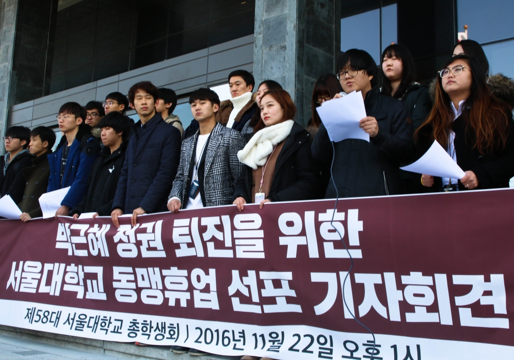 [속보]박근혜 정권 퇴진 위한 동맹휴업 선포 기자회견 열려