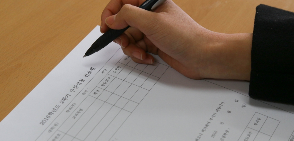 학생들이 흔히 ‘드랍’이라고 부르는 수강신청 취소 제도는 다양한 이유로 학 생의 학업 수행 부담이 과도해졌을 때 담당 교수의 승인을 받아 수강신청을 취 소하는 제도다. 현재 수강신청 취소기간 은 규정에 따라 수강신청 변경기간 후부 터 수업 주수 2분의 1까지 보장되고 있 다. 그러나 최근 본부가 수강신청 취소 기간을 축소하고자 한다는 소식이 들리 면서 학생들은 당황스럽다는 반응이다.