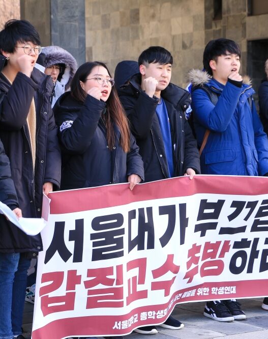 같은 시간 행사장 입구에서는 선포식을 규탄하는 기자회견이 열렸다. ‘부당징계철회! 시흥캠퍼스 강행 중단! 투쟁위원회(징투위)’ 소속 학생은 “본부는 끝까지 학생 배제로 일관한다”고 목소리를 높였다. 징투위 측은 산학협력체결 여부와 시흥시 보도자료에 나온 53개의 프로그램에 대한 본부와 학생 간 사전소통이 없었다며 “본부가 또다시 시흥캠퍼스를 밀실 날치기 강행한다는 지적이 나오고 있다”고 주장했다.