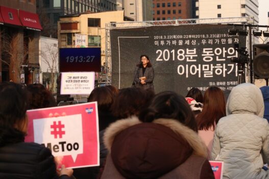 3월 22일 청계광장에서는 자신의 성폭력 피해를 털어놓으며 연대의 메시지를 전하는 ‘2018분 이어말하기’가 펼쳐졌다.
