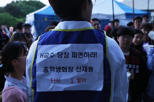 어제(8일) 저녁 6시 행정관(60동) 앞에서 사회학과 H교수 파면을 요구하는 한마음 공동행동(공동행동)이 열렸다. 공동행동에 참석한 600여 명의 학생은 H교수에게 3개월 정직 처분을 내린 징계위원회(징계위)를 규탄하며, 연대의 촛불을 밝혔다. 신재용(체육교육 13) 총학생회장은 징계위 재심의와 파면 결정을 촉구하며 무기한 단식 농성에 돌입했다. 그는 “정직 3개월은 모두가 납득할 수 없는 결과”라며 “인권이 온전히 지켜지는 학교를 만들기 위해서 온 힘을 다해 싸울 것”이라는 의지를 드러냈다.