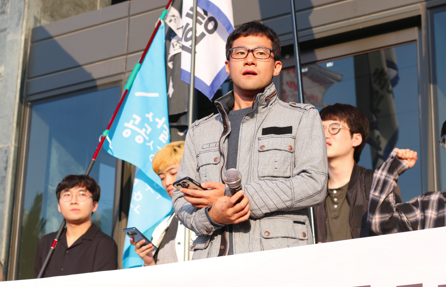 ▲5월 8일 집회에서 발언하는 김일환 씨