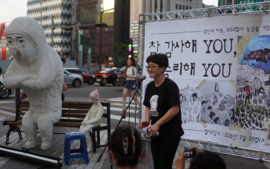 ‘반도체 노동자의 건강과 인권 지킴이(반올림)’의 거리 투쟁이 지난 7월 25일부로 1023일 만에 마침표를 찍었다. 이날 저녁, 삼성전자 서초 사옥 앞에서 농성 해제를 기념하는 문화제가 열려 축하와 연대의 목소리가 울려 퍼졌다. 삼성전자와 반올림이 수용하기로 합의한 조정위원회의 중재안에 따라, 삼성전자는 반도체 직업병 피해자에 대한 보상 및 재발 방지책을 마련할 계획이다. 삼성전자 반도체 공장 근로자 故황유미 씨가 급성 백혈병으로 사망한 지 11년 만의 일이다.  문화제에서는 농성 해제를 축하하고 지난 시간을 회상하는 반올림 활동가들의 발언이 이어졌다. 공유정옥 반올림 간사는 “(2015년 8월) 삼성이 독자적인 보상을 하겠다고 발표한 이후, 이 자리에 의자를 펼치고 앉아 몇 명이서 떠들기 시작한 게 농성의 시작”이었다고 회상하며 “여러분 덕분에 여기까지 왔다”고 자리를 메운 시민들에게 감사를 표했다. 삼성 직업병 피해자 한혜경 씨의 어머니 김시녀 씨는 “(농성을 해제하는 것이) 이렇게까지 힘든 일은 아니었을 텐데 1023일이 걸렸다. 여러분께 너무 감사하다”고 눈물을 흘렸다.  농성 해제가 반올림 활동의 종료를 의미하지는 않는다. 이날 참가자들은 “제대로 된 사과, 배제 없는 보상, 재발 방지 대책의 정당한 요구가 실현되는 것을 지켜볼 것”이라는 다짐문을 낭독하며 문화제를 마무리했다. 11년 만의 반올림을 이뤄낸 지금, 인권의 완전한 올림을 향한 움직임은 계속되고 있다.