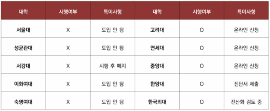 2007년 <서울대저널>이 실시한 설문조사에 따르면 생리공결제에 찬성하는 서울대 학생은 77%에 달했다.(<서울대저널>, “여학생 수업권, 한 걸음 더 가까이”) 하지만 서울대는 이후 10년이 넘는 시간이 지나도록 생리공결제를 도입하지 않았다. 해당 제도를 담당하는 교무처 학사과는 생리공결제에 대한 <서울대저널>의 물음에 제도 시행에 대한 내부 논의가 아직 이뤄지지 않았다고 답했다. 하지만 한 언론사에 따르면 서울대는 “‘제도 악용 가능성’, ‘권리 과잉 주장’이라는 반대 의견을 불식시킬 구체적인 시행 지침이 마련되지 않았기 때문”에 생리공결제는 시행하지 않는다고 설명했다.(<위키트리>, “10년째 악용·역차별 논란, ‘대학 생리공결제’”)
