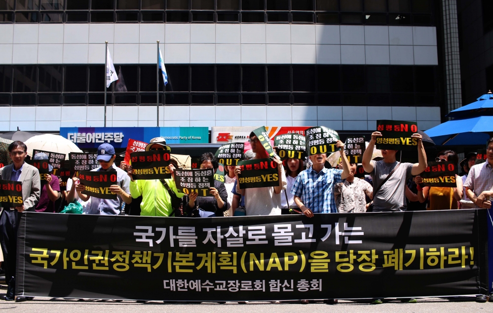 무더웠던 7월의 어느 날, 여의도에서는 국가인권정책기본계획(NAP)의 철회를 요구하는 집회가 열렸다. “국가를 자살로 몰고 가는 국가인권정책기본계획(NAP)을 당장 폐기하라!”는 플랜카드의 아래에는 ‘대한예수교장로회 합신 총회’의 이름이 적혀 있었다. 예수는 “네 이웃을 네 몸과 같이 사랑하라” 했건만, 왜 종교의 이름으로 행해지는 성소수자 혐오는 날이 갈수록 거세질까.