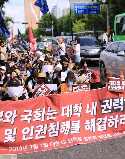 삶을 지키려 할수록 소라넷을 그냥 두면 안 되겠다는 이들의 생각은 선명해진다. 희준은 지수와 화영에게 ‘메두사 자경단’에 가입할 것을 제안한다. 스스로 자, 경계할 경. ‘남자들의 눈치를 전혀 보지 않는 여자들이 모인’ 사이트 메두사에서 시작된, 스스로를 지키는 여자들의 단체다. 소라넷 폐쇄를 목표하는 그곳에서 지수는 모니터링을 담당한다. 그러나 그는 곧 ‘육변기(남성의 성욕을 받아내는 변기라는 의미)’ 게시판에 댓글 세 개를 달아야 하는 승급조건 앞에서 망설인다. “나 못하겠어. 이거 꼭 해야 돼? 다른 걸로 세상에 도움이 되면 안 되겠느냐 말야.” 하지만 희준의 대답은 단호하다. 안 보고 안 듣고 살 수 있냐고. 육변기라는 단어가 있다는 걸 모른 척 한다고 우리가 안전해지냐고. 여자들이 죽고 싶은 마음으로 들어오는 소라넷은, 이제는 없어져야 한다고. 메두사는 곧 ‘너 소라넷 하지?’라는 제목의 글로 소라넷 게시판을 도배하는 온라인 공격을 계획한다. 소라넷 팔로워들을 찾아내는 트위터 계정 ‘소라넷 하니?’에서 착안한 것이었다. 일시적으로나마 서버를 마비시킨 ‘승리’ 앞에서 지수와 희준은 소라넷이 더 이상 불가침의 영역이 아님을 확인한다. 승리는 다른 자경단에게도 큰 동력이 되고, 이어진 이들의 활동에 경찰도 압수수색을 약속한다. 마침내 2016년 6월 6일, 소라넷의 공식 트위터가 사이트 폐쇄를 발표한다. 그날 밤 만난 지수와 희준은 “하용가”를 외치며 건배한다. 여성의 몸을 침탈할 수 있다고 생각하는 남성들의 ‘하이 용돈 만남 가능?’이라는 물음을 조롱하듯이. 그리고 이 물음이 일상적인 사회에서, 여자들은 이제 가만히 있지 않겠다는 듯이. 한번 이긴 여성들은 다시 이길 수 있다 정미경 작가가 ≪하용가≫ 집필을 다짐한 계기는 ‘초대남 모집글’을 접하면서였다. 대학원에서 여성학을 공부하고, 페미니스트 저널 <이프>에서 편집장으로 일하던 그는 ≪근본 없는 페미니즘: 메갈리아에서 워마드까지≫의 공동저자들로부터 ‘초대남 모집글’에 대해 듣는다. 소라넷에 대해 알게 되며 정미경 작가는 “여성의 몸을 폭력적으로 소비하는 문화가 온라인에서 아주 일상적이라는 사실에 충격을 받았다”. 그리고 이들이 처벌조차 되지 않고 있다는 현실에 분노했다. 그는 소설로써 참혹한 현실을 고발해야겠다고 결심했다. 등장인물은 소라넷 폐쇄운동에 동참했던 여성들, 디지털 성범죄의 피해경험을 전해준 이들의 목소리를 바탕으로 재구성했다. 특히 중점을 뒀던 부분은 피해자로서의 여성 캐릭터를 그려내는 일이었다. 정미경 작가는 기존의 남성중심적 문학 서술이 성폭력을 자극적이고 선정적인 소재로만 소모해왔다고 생각했다. 따라서 ≪하용가≫에서는 “피해 여성의 이미지를 전복하는 것”에 중점을 뒀다. ‘피해자다운 피해자’를 요구하는 가부장적 인식을 깨뜨리는 여성들이 등장하기 시작했음을 책을 통해 보여주고 싶었다. 이야기의 마지막에서 성폭력 생존자 화영이 자존감을 회복하고, 자신의 가치를 창조해 나가는 부분을 가장 공들여 쓴 이유다. 정미경 작가는 “성폭력의 경험은 고통스럽지만, 무기력과 공포만을 동반하지 않는다”며 “그것에 직면하며 삶을 다시 살아낼 용기와 힘이 우리여성 안에 있다는 점을 기억했으면 한다”고 강조했다. 소설을 쓰는 과정이 순탄하지만은 않았다. 소라넷의 현실을 마주하면서 그는 “이거 꼭 해야 돼?”라고 묻는 지수처럼 지독한 염증과 좌절을 느꼈다. 한동안 글을 쓰지 못하던 정미경 작가는 ‘지면 안 된다’는 생각으로 다시 ‘부서져라’ 키보드를 두드렸다. 결정적 계기는 피해여성이 죽었다는 소식을 듣고 어떤 유저가 단 ‘유작이라니, 어쩐지 더 꼴리더라’라는 댓글이었다. 댓글을 본 정미경 작가는 이처럼 심각한 범죄행위가 “매일, 특정 지역에 한정되지 않고, 무차별적으로” 행해진다는 사실을 외면할 수 없었다. 현실을 외면한 대가가 무엇일지는 명백했다. 불법촬영의 근절을 위한 싸움은 아직 갈 길이 멀지만, 정미경 작가는 ≪하용가≫를 통해 싸움에 조금이나마 힘을 보탰다고 느낀다. 독자들이 소설을 통해 피해자의 고통에 공감한다면 불법촬영 및 시청을 하지 않는 ‘작은 변화’를 일으킬 수 있다고 믿기 때문이다. 무엇보다 작가는 소설을 통해 소라넷 폐쇄라는 승리의 역사가 기억되기를 바란다. 책에 실린 작가의 말은 이렇게 전한다. ‘싸움은 시작됐고 우리는 이겨야 한다. 그리고 한번 이긴 여성은 다시 이길 수 있다.’