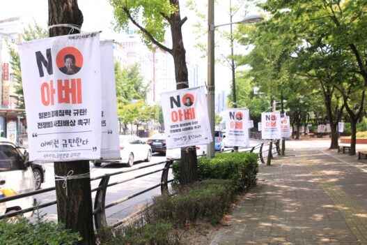 서대문 형무소 근처 현수막 아래 현 아베 정권의 행보를 규탄하는 문구가 손글씨로 적혀 있다. 정치·경제적 골이 더욱 깊어지고 있는 지금, ‘사지 않고 가지 않는’ 보이콧 운동은 현재 진행형이다.