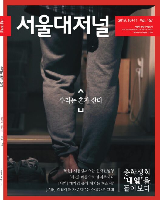 커버스토리 우리는 혼자 산다학원시흥캠퍼스는 현재진행형 견학(見學), 아이들이 보고 배운다 A교수 해임, 그 너머를 향해가깝고도 먼 곳, 서울대학교미술관캠퍼스라이프 무대 위에서 여성혐오를 말하다총학생회 ‘내일’을 돌아보다총학생회 ‘내일’에게 묻다TV부사진으로 보다 이름으로 불러주세요사회 문화연구의 시장화, 그 속의 이공계 대학원생들은 지금영구임대주택 30년…사회의 울타리와 철장 사이에서대기업 공채 폐지는 희소식?오감을 유지하자 런웨이를 가로지르는 아름다운 그대필름通 끝까지 움켜쥔 책임감오피니언오피니언 고통의 감각마저 불평등하다면오피니언 시흥캠퍼스 투쟁을 회상하며기자수첩 당신의 괄호는 무엇입니까데스크칼럼 이것이 시작이라면
