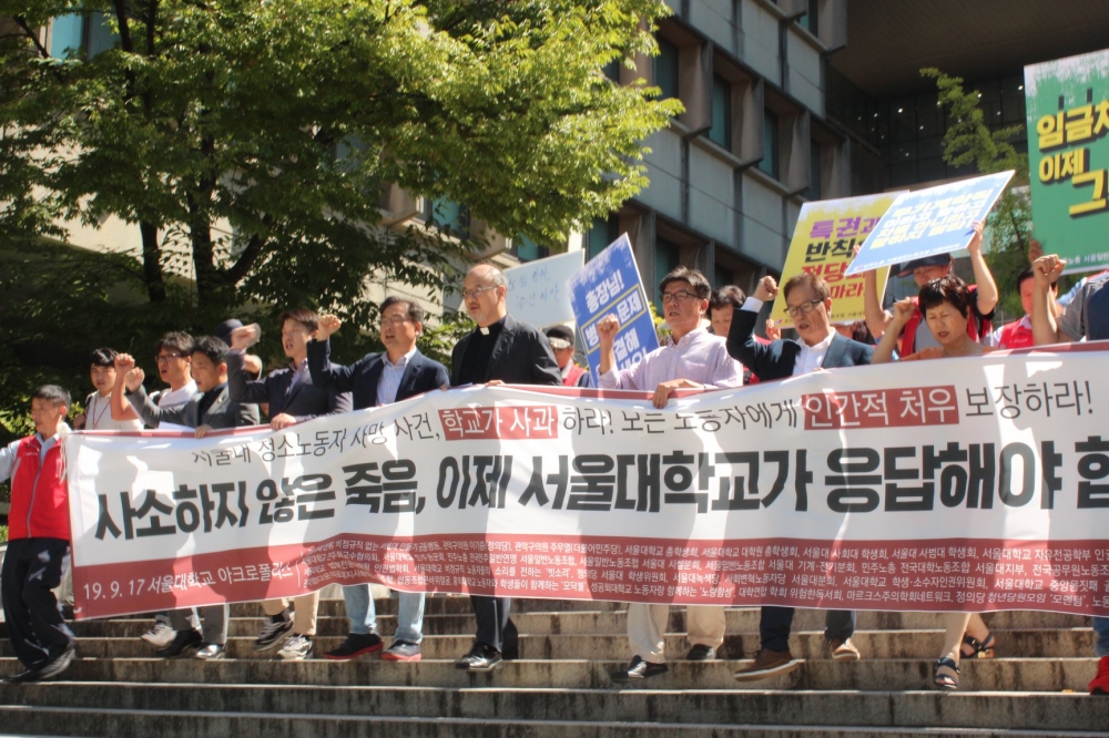 이번 공동행동은 노동자, 학생, 시민사회 구성원들의 발언으로 꾸려졌다. 민주노총 전국민주일반연맹 서울일반노조 서울대시설분회 최분조 분회장은 고인이 청소일을 시작한 2002년에는 남성 청소노동자들을 위한 휴게공간이 없었고 “강의실 구석에 겨우 만든 휴게공간마저 ‘밖에서 보기 싫다’는 얘기를 들어야했다”며 학교 당국에 고인의 죽음에 대한 책임을 물었다.