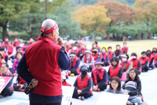 오전에 모인 노동자들은 국회의원들에게 메시지를 전했다. 서울일반노조 관악동작지부 이성호 지부장은 국정감사를 앞두고 집회를 한 이유에 대해 “우리가 지금 여기에 모인 것은 어디 하소연할 데가 없어서”라며 “학교는 교섭할 때마다 들어주는 것이 없다”고 설명했다. 이어 그는 “한 달에 1시간의 교육시간을 보장해달라는 것을 못하게 하는 것은 사실상 노조를 없애라는 말”이라고 역설했다. 인문대학에서 일한다고 밝힌 임영숙 씨는 “임민형 분회장님의 단식이 오늘로 17일차에 접어들었다”면서 “천막 앞을 지날 때마다 응원의 한마디를 건네고 싶지만 마음이 아파 못 들여다보고 있었다”며 학교 당국에 책임있는 교섭을 주문했다.