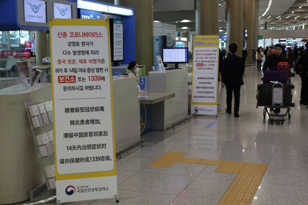 해외에서 발생한 코로나19에 따른 변화는 입·출국을 담당하는 공항이나 항구에서 가장 먼저 일어났다. 인천공항도 마찬가지였다. 인천공항은 전염병 예방을 위해 수유실을 비롯한 편의시설 운영을 중단했다. 해외에서 입국하는 사람들이 가장 많은 곳인 만큼 선별 진료소가 운영되기도 했다. 코로나19를 대비한 변화는 공항 차원에서뿐 아니라 이용객 사이에서도 나타났다. 사람들은 중국으로의 출국을 줄였다. 이는 비슷한 시간대에 다른 나라로 출국하는 경우와 비교해 눈에 띄는 정도였다. 입국장에서 마스크를 쓰지 않은 사람을 찾기는 어려웠다. 한편, 본국으로 돌아가는 외국인들은 마스크를 대량으로 챙겨 코로나19를 대비하는 모습이었다.
