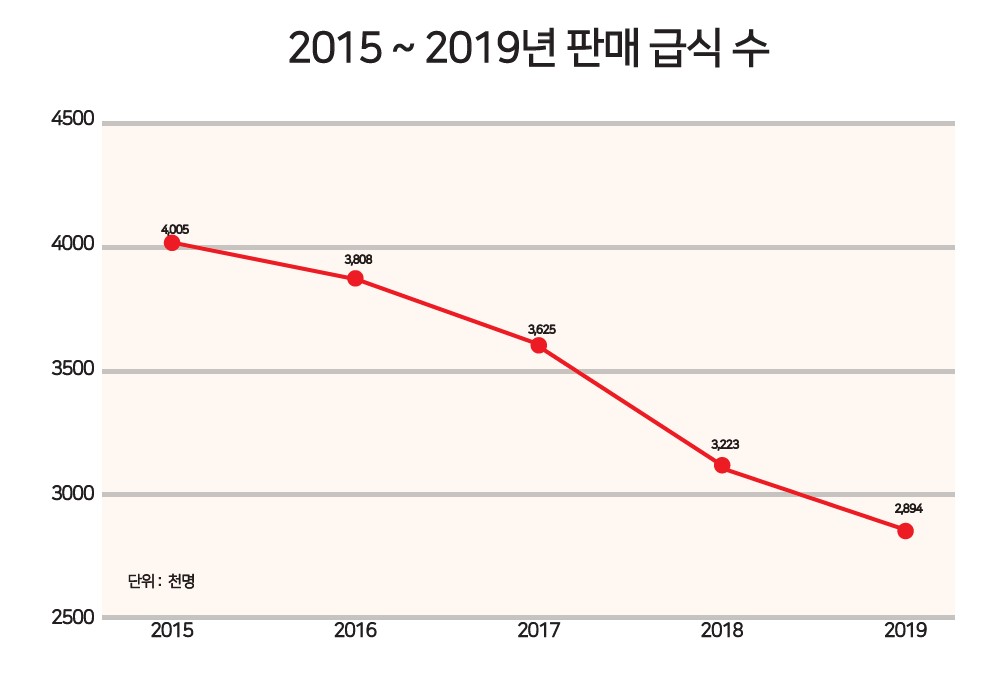 생협 측이 발표한 식대인상안에 따르면 천원의 식사는 운영이 축소되거나 300원 인상되고, 나머지 식대는 500원 인상된다. 생협이 식대인상을 주장하는 이유는 간단하다. 식당 부문의 적자가 심해지고 있기 때문이다. 그동안은 카페나 매점 부문의 영업이익을 통해 식당의 적자를 메우는 방식으로 가격을 유지할 수 있었지만, 앞으로는 식당 부문의 적자가 나머지 부문의 흑자를 넘어설 것으로 예측된다. 생협 임정빈 집행이사는 “올해는 코로나 사태로 인해 식당 부문에서 30억 가량의 적자가 나올 것으로 예상된다”며 “지난 15년동안 식대가 동결돼온 반면, 임금과 식대료는 인상된 만큼 식대 인상안 논의가 필요하다”고 밝혔다. 학생들의 식습관이 변화하면서 학생 식당의 식수가 지속적으로 감소하는 것도 적자 확대의 원인으로 지목된다. 이러한 구조적 변화 속에서 문제 해결을 위해 특단의 대책이 필요한 상황이다.