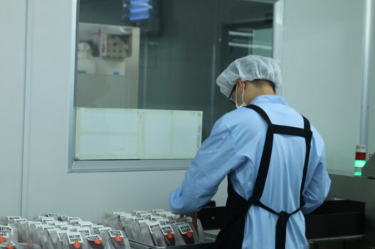 안유진 씨는 내포장실에서 비닐 포장지에 빵을 넣는 업무를 하는 중이다. “봉투 안에만 만질 수 있어요. 밖은 기름 때문에 (만지면) 안돼요” 곧 트레이 하나가 잘 포장된 빵으로 가득 채워졌다. 빵을 넣기 전에는 표면에 이물질이 있는지 꼼꼼하게 확인한 후 넣어야 한다. “민경씨, 여기 좀 부탁해요!” 일손이 부족한 부분이 있으면 도움을 청한다. 시금치 카레빵, 베이컨 소세지빵, 머핀, 쿠키 등 다양한 종류의 제과가 담긴 트레이가 내포장실을 오갔다. 그 중 베이컨 소세지빵은 유진 씨가 제일 좋아하는 빵이다. 베이컨 소세지빵은 특이하게 포장지 앞뒷면이 다르다. 유진 씨는 먼저 시범을 보인다. “이 부분을 잡고 빵을 이렇게 넣으면 돼요.”