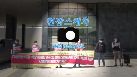 지난 12일 수요일, 중앙도서관 앞 아크로폴리스 광장에서 ‘다향만당 폐점·식당 통폐합 중단과 2021년 생활협동조합 대의원총회 파행 규탄을 위한 서명운동’ 발표 기자회견이 열렸다. 이번 연서명은 4월 9일부터 5월 2일까지 24일 동안 진행됐으며, 학부 재학생 228명, 대학원 재학생 50명, 졸업생 75명, 학내 노동자 34명 등 총 390명과 7개 학내 단체가 참여했다.