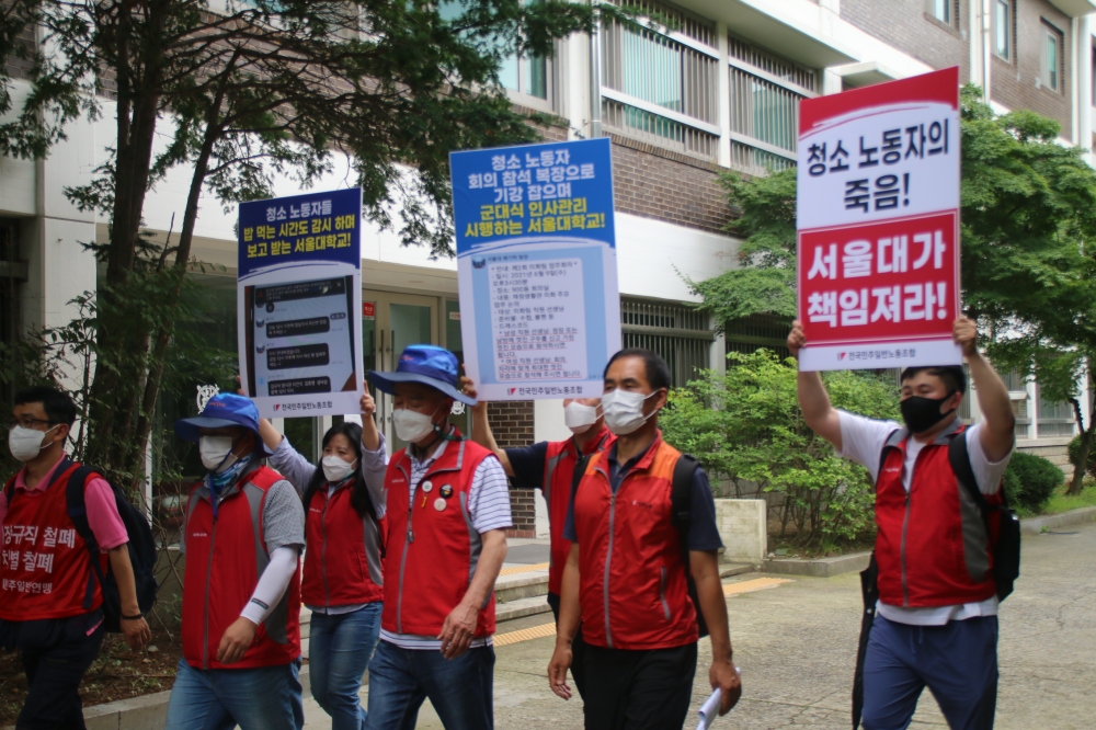 지난 30일, 고용노동부(고용부)는 서울대학교 청소노동자 사망과 관련한 조사 결과 직장 내 괴롭힘 사실이 일부 인정됐다고 발표했다. 고용부는 ‘필기시험 실시 및 시험성적의 근무평정 반영 관련 의사표시’, ‘복장에 대한 점검과 품평’이 직장 내 괴롭힘에 해당한다고 판단했다. 고용부 지도에 따라 서울대는 필기시험 실시 및 복장점검에 대한 개선 및 재발방지책을 수립하고, 전체 노동자에 대한 직장 내 괴롭힘 특별 예방교육을 실시해야 한다. 이에 전국민주일반노동조합(민주노총)은 30일 입장문을 내고 ▲오세정 총장의 사과와 2차 가해자 처벌 ▲공동조사단 구성 ▲공무직위원회 근무평정안 폐지 ▲직장 내 괴롭힘 방지법 개정을 요구했다. 민주노총은 해당 입장문에서 “직장 내 괴롭힘을 가능케 했던 구조적 문제와, 열악한 노동조건 및 노동강도의 문제는 다뤄지지 못했다”며 고용부 조사의 한계를 지적했다. 본부는 지금까지 사과 및 노동 환경 개선 등 노조와 학생사회의 요구에도 인권센터 조사를 통해 직장 내 괴롭힘이 있었는지 규명하는 게 우선이라는 입장을 고수해왔다. 고용부 조사로 직장 내 괴롭힘이 인정된 가운데 인권센터 조사 결과를 비롯해 학교가 공동산재조사단 구성에 대해 새로운 입장을 내놓을지 관심이 요구된다.