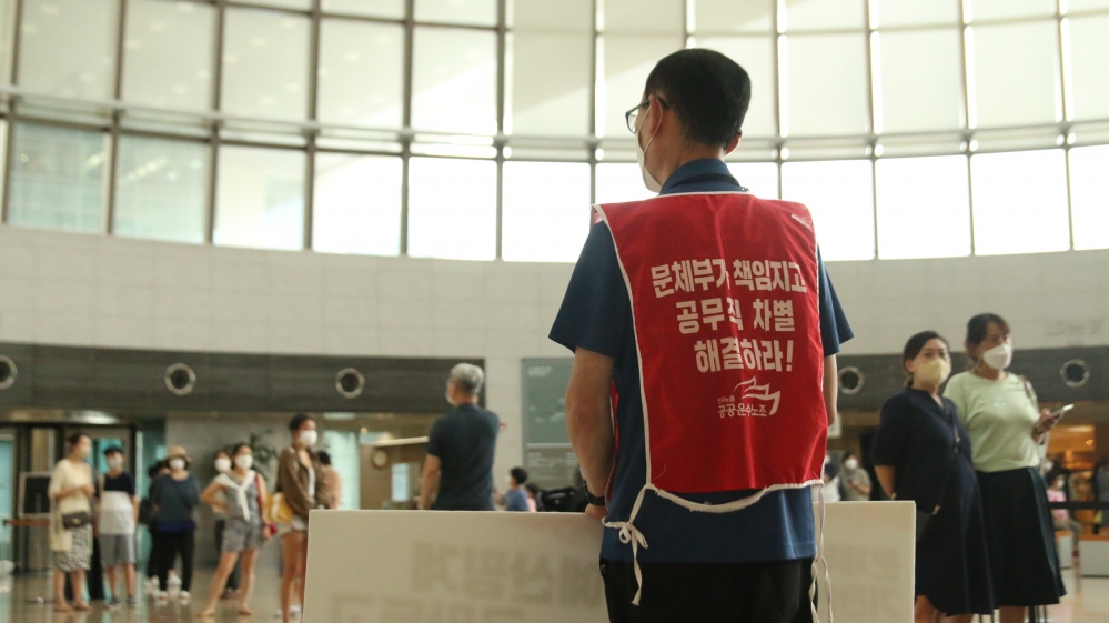 이들은 2019년부터 계속해서 공무직 차별 철폐를 주장했으나 공무직 노동조건은 개선되지 않고 있다. 민주노총 문화체육관광부 교섭노조연대(문체부교섭연대)는 지난 1월부터 5월까지 문체부와의 교섭을 진행했지만, 문화체육관광부(문체부)는 예산 부족과 기획재정부(기재부)의 지침을 이유로 교섭 결렬을 선언했다. 공공운수노조 국립중앙박물관분회 전용학 분회장은 “문체부와 기재부의 책임 떠넘기기 속 공무직 노동자들은 10년 넘게 근무해도 최저임금의 굴레에서 벗어나지 못한다”며 문체부의 이 같은 태도를 비판했다. 공공운수노조 측에 따르면 국립 박물관 1,000여 명의 공무직 중 770여 명이 최저임금노동자다.