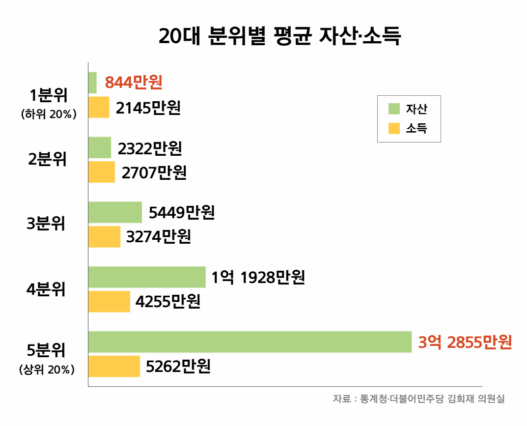 청년 세대 내 자산·소득 격차 ⓒ통계청·더불어민주당 김회재 의원실