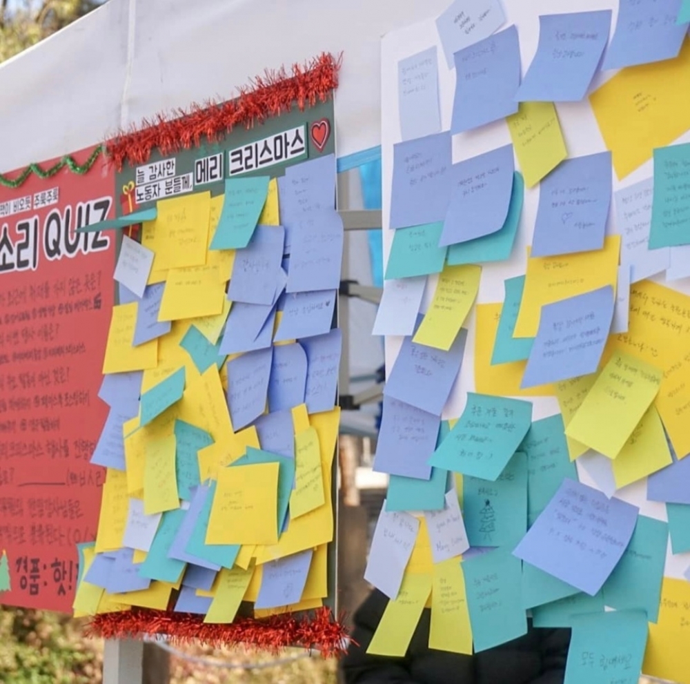 1, 2학년 때 과 친구들이랑 밴드를 만들어서 일주일에 몇 시간씩 만나서 합주하고, 문화관 앞에서 공연했던 기억이 가장 좋았어요. 내 미래에 도움이 되니 마니 하는 고민 없이 그냥 좋아하는 일과 사람에 내 시간과 노력을 팡팡 쓸 수 있다는 게 행복했고요. 그때 함께 한 친구들이 아직도 대학에서 만난 사람 중 가장 친한 사람들이에요. 또 2학년 때 동아리 ‘빗소리’에서 학내 노동자분들께 감사 문구를 전하는 행사를 진행했어요. 그때 이름 모를 많은 학우분이 참여해주셔서 말로 표현하기 힘든 뭉클함을 느꼈네요. 그게 아직까지 제 안에 남아 어떤 힘이 되는 것 같아요.