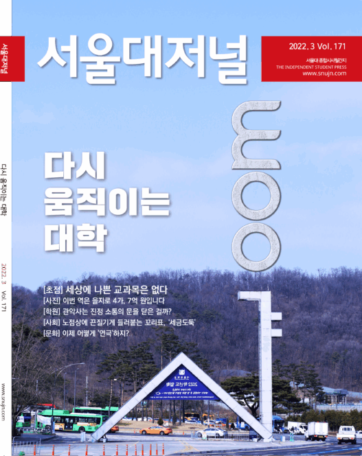 커버스토리 다시 움직이는 대학TV부사진으로 보다 이번 역은 을지로 4가,7억 원입니다초점 세상에 나쁜 교과목은 없다사회노점상에 끈질기게 들러붙는 꼬리표, ‘세금도둑’학원학생회 동향학내 노동 동향관악사는 진정 소통의 문을 닫은 걸까?문화서울대저널 묻다 TV 뒤에 노동자 있어요이제 어떻게 ‘연극’하지?영화와 내러티브, 건강하게 편식하려면오감을 유지하자 ‘보금자리’에 대한 불온한 진실들오피니언기고 왕을 모시던 최고의 장군인 나, 왕을 수하에 둔 <킹스맨>이 되어버렸다?! 어쩌다 세계대전도 멈춰버린 걸지도…기고 다큐멘터리 《교대》에 관한, 기록에 대한 기록으로기고 영동 가는 길PD수첩 ‘보이는’ 언어를 전하는 일데스크칼럼 슬기로운 코로나 이행기를 위해서