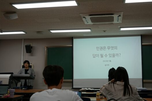 지난 5월 31일 오후 5시, 500동 302호에서 송지우 교수(정치외교학부)의 강연 ‘인권은 무엇의 답이 될 수 있을까?’가 개최됐다. 이번 강연은 서울대학교 인권센터와 제63대 서울대학교 총학생회 ‘정오’가 학내 구성원의 인권 의식 향상과 인권 보호 문화 확산을 위해 공동으로 진행하는 ‘인권 톡톡’의 1차 강연이다.