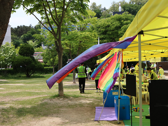 5월의 화창한 일요일, 제3회 춘천소양강퀴어문화축제(춘천퀴어축제)가 열리는 의암공원을 찾았다. 현수막과 포스터를 따라 도착한 행사공간에는 노란 천막의 부스들 위로 만국기 대신 다양한 성소수자 깃발이 바람에 나부끼고 있었다.