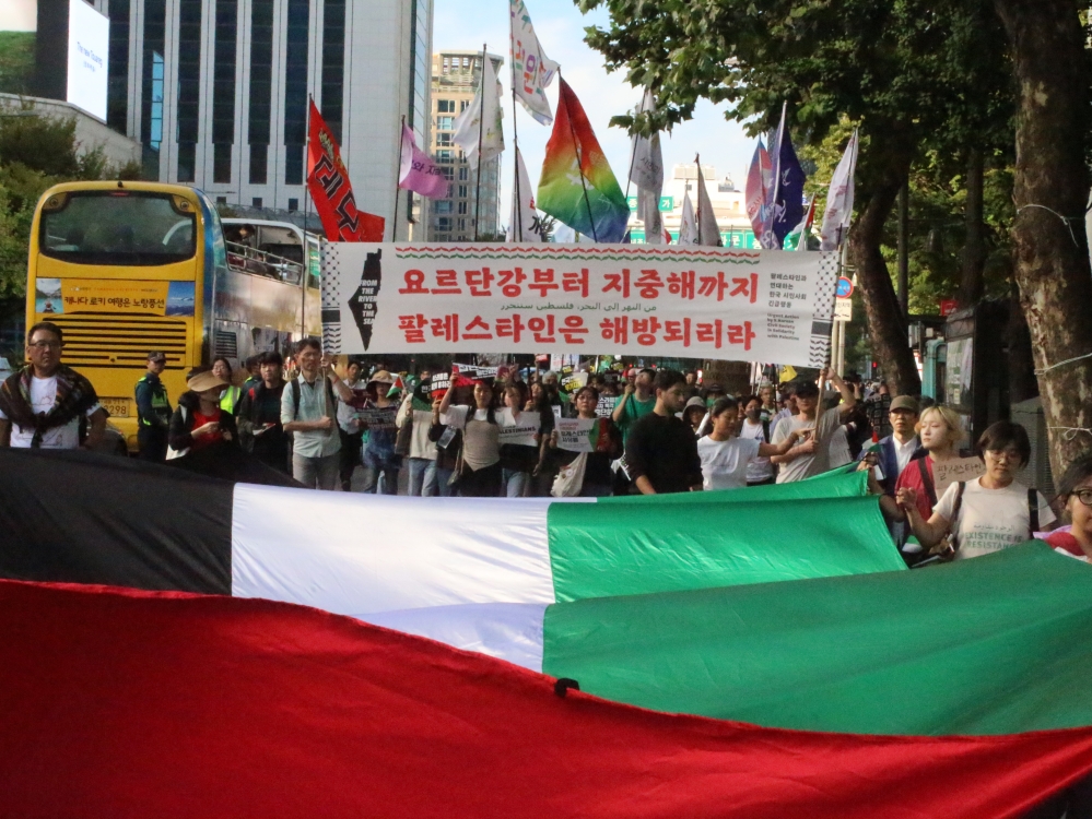“팔레스타인에 해방을! 팔레스타인에 연대를!”