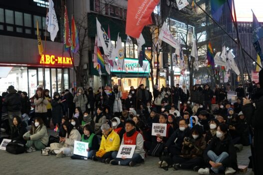 신촌은 1987년 6월 민주항쟁의 불씨를 댕긴 이한열 열사 최루탄 피격이 있었던 장소다. 이날 가지각색 깃발을 내세워 신촌에 등장한 청년들은 불안이란 키워드를 통해 각자가 처한 다종다양한 삶의 양태를 드러내고자 했다. 무지갯빛 투쟁 머리띠를 쓴 집회 참가자 A씨는 “남태령에서 이어진 연대의 물결에 동참하고자 오늘 집회에 참가했다”며 “성소수자 당사자인 나를 비롯해 많은 소수자가 광장에 모일 수 있어 기쁘다”는 소감을 밝혔다. 청년이며 동덕여대 학생이며, 노동자이며, 대학 비진학자이며, 대학원생이며, 세입자이며, 장애인이며, 성소수자인 이들이 모였다. 청년이라는 단일한 정체성을 넘어 세상의 많은 존재를 호명한 이들의 목소리에 담긴 다채로운 빛깔의 평등이 그날의 광장을 물들였다.