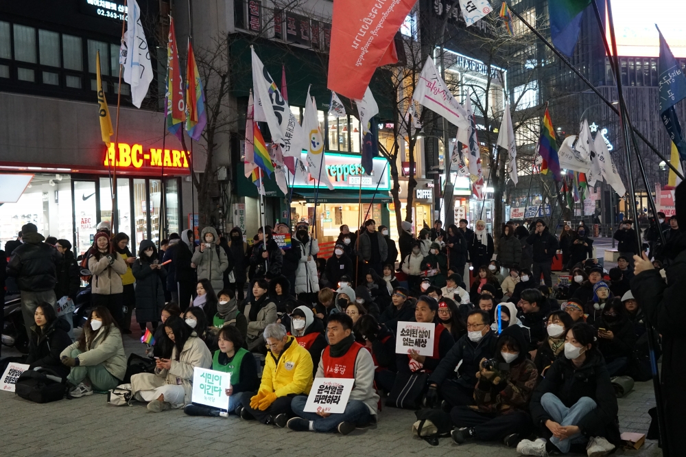지난 21일, 신촌 명물길 일대에서 ‘윤석열 퇴진! 세상을 바꾸는 네트워크’의 주최로 10개 청년‧학생 단위가 참가한 윤석열 퇴진 촉구 집회가 열렸다. 공동주관으로 참여한 ‘퇴진과 함께 평등으로 나아가는 청년‧학생 단위들’은 불안이란 키워드로 대표되는 청년 당사자들의 삶을 통해 윤석열 퇴진이 필요한 이유를 말하고자 했다. 사회를 맡은 정의당 서울시당 변현준 청년위원장은 “청년이 겪는 다층적이고 복잡한 삶의 이야기를 증언하고자” 본 집회를 기획했으며, “서로의 이야기를 통해 우리가 겪는 문제를 함께 마주하고 연대로 나아갈 수 있길 바란다”고 밝혔다. 참가자들은 민중 의례 후 “윤석열 파면하고 평등으로 가자”는 구호를 외치며 집회를 시작했다.