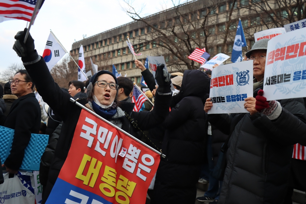 서울대 관악캠퍼스 아크로폴리스 광장(행정관 뒤)에서 오늘 오후 5시 경부터 ‘탄핵반대 서울대 집회’가 진행되는 가운데, 수백 명이 모여 “탄핵 반대”, “윤석열 석방하라”를 외치고 있다. 이에 항의의하며 규탄 집회를 연 학생들과 동문들이 “내란세력 물러가라”를 외치며 대치 중이다. 서울대 공동행동 이시헌(자유전공 15)는 “민주주의를 지켜내고 내란세력을 몰아낼 수 있도록 서울대로 지금 바로 모여달라”고 시민들에게 호소했다.